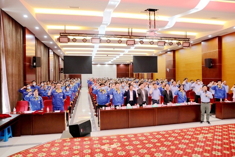 与会人员在公司副总经理鲁富贵的带领下,高举右拳向大会庄严宣誓,用掷地有声的口号展示出了每一个304永利集团人实施和执行精益管理的信念与决心。宣誓姜本次大会的气氛推向高潮,更加让304永利集团人在此刻再次凝聚士气,奋发向上,让团队力量成为本次项目的向心力,彰显出全体304永利集团人对精益管理的昂扬斗志。